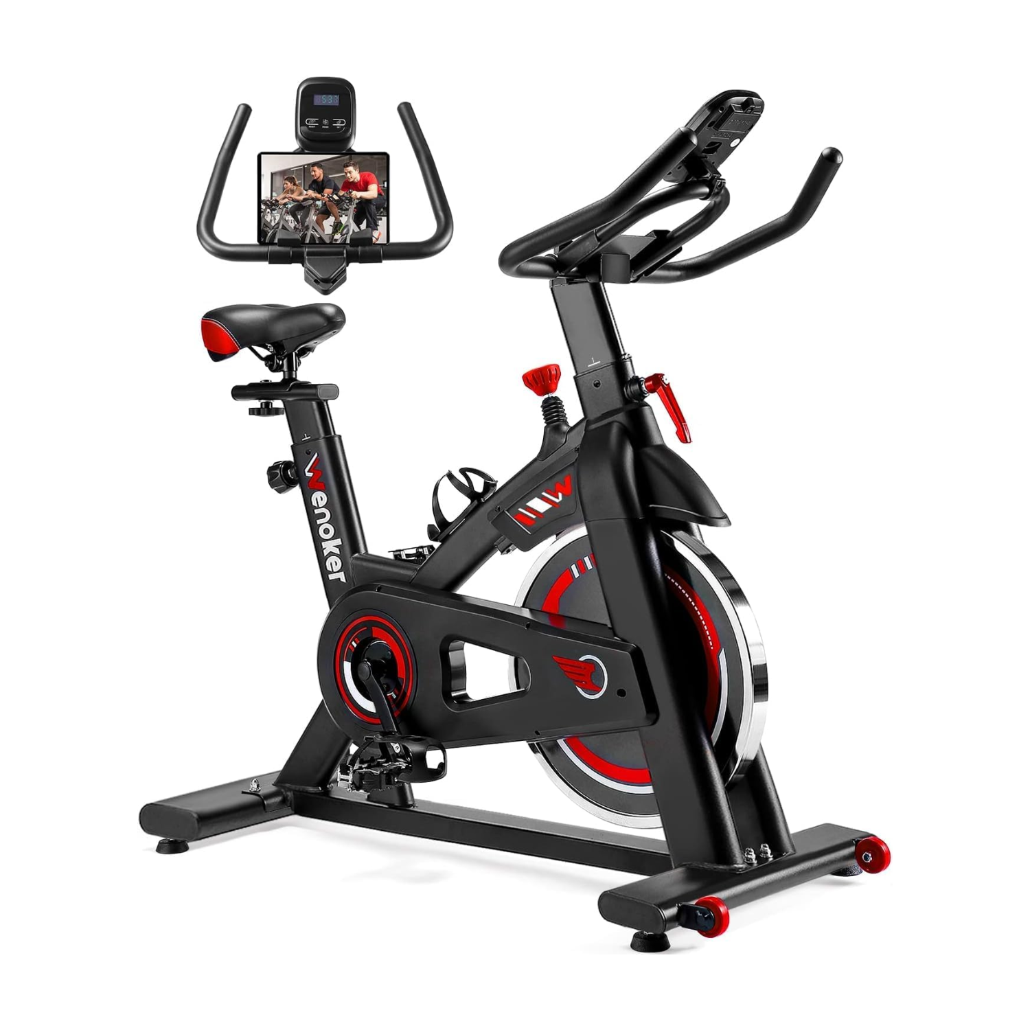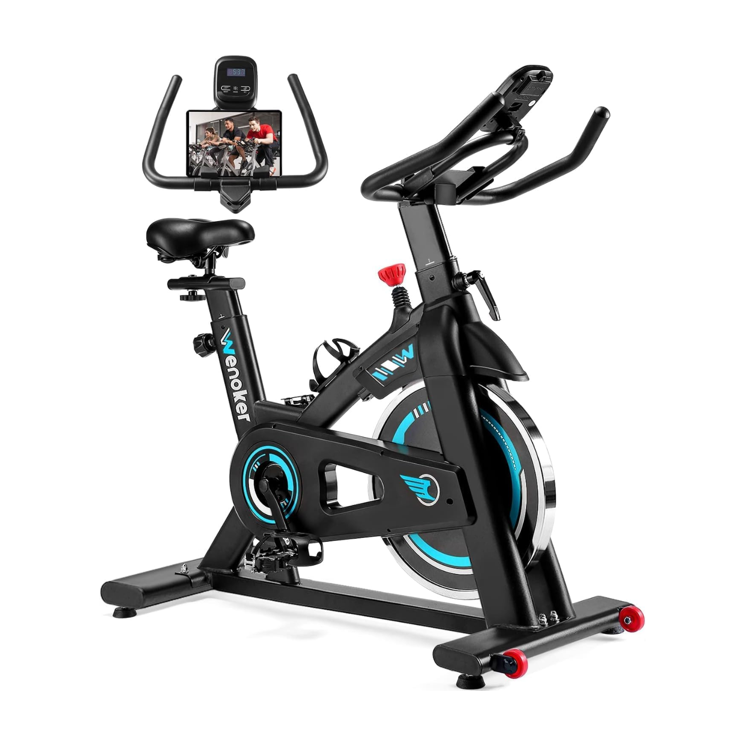 • [贴心的产品细节] WENOKER 动感单车配有平板电脑支架、水壶架和笼式脚踏。从车座到车把的延伸距离,为各种体型的骑行者提供了充足的空间。特色运输轮方便您将动感单车从室内搬到室外。车把覆有轻质海绵涂层,可有效保护车把,让您骑行时更加舒适。多点式车把设计,让您拥有不同的骑行方式。