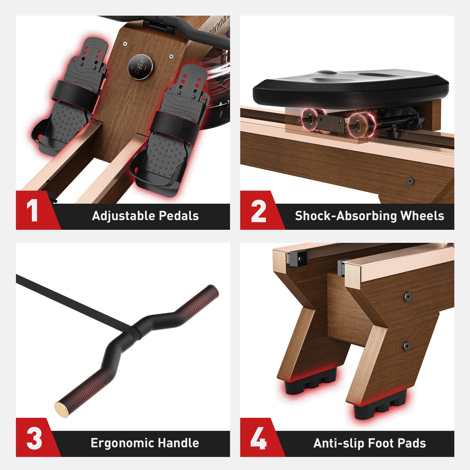 Experience authentic water resistance that increases naturally as your rowing speed builds. The 22-liter oversized water tank lets you fine-tune resistance by adjusting the water level, suitable for beginners and advanced users alike.
