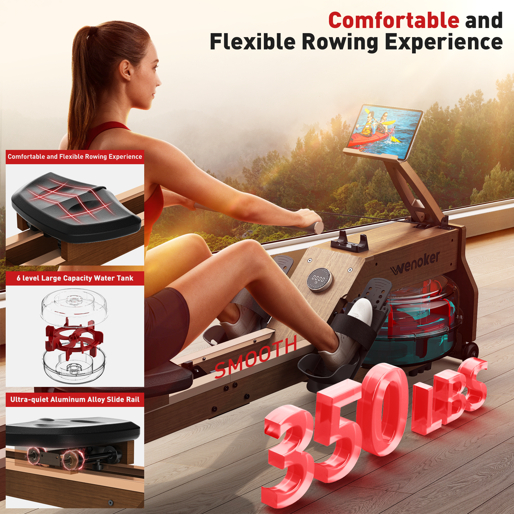 Built from premium solid wood, this water rowing machine delivers superior durability and stability while supporting users up to 300 lbs (136 kg).