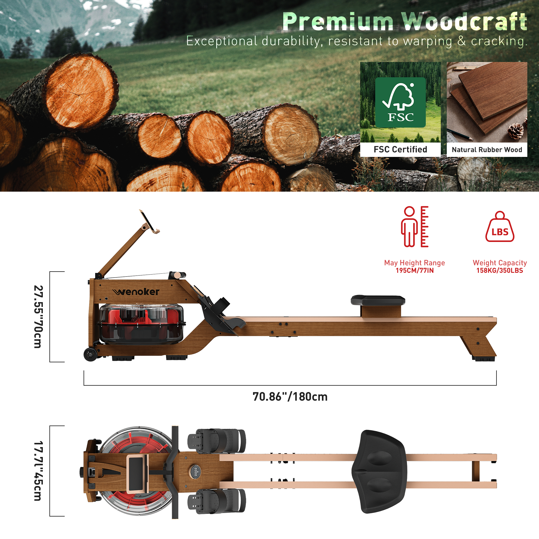 Wenoker Water & Magnetic Dual Resistance Rowing Machine RW211-51