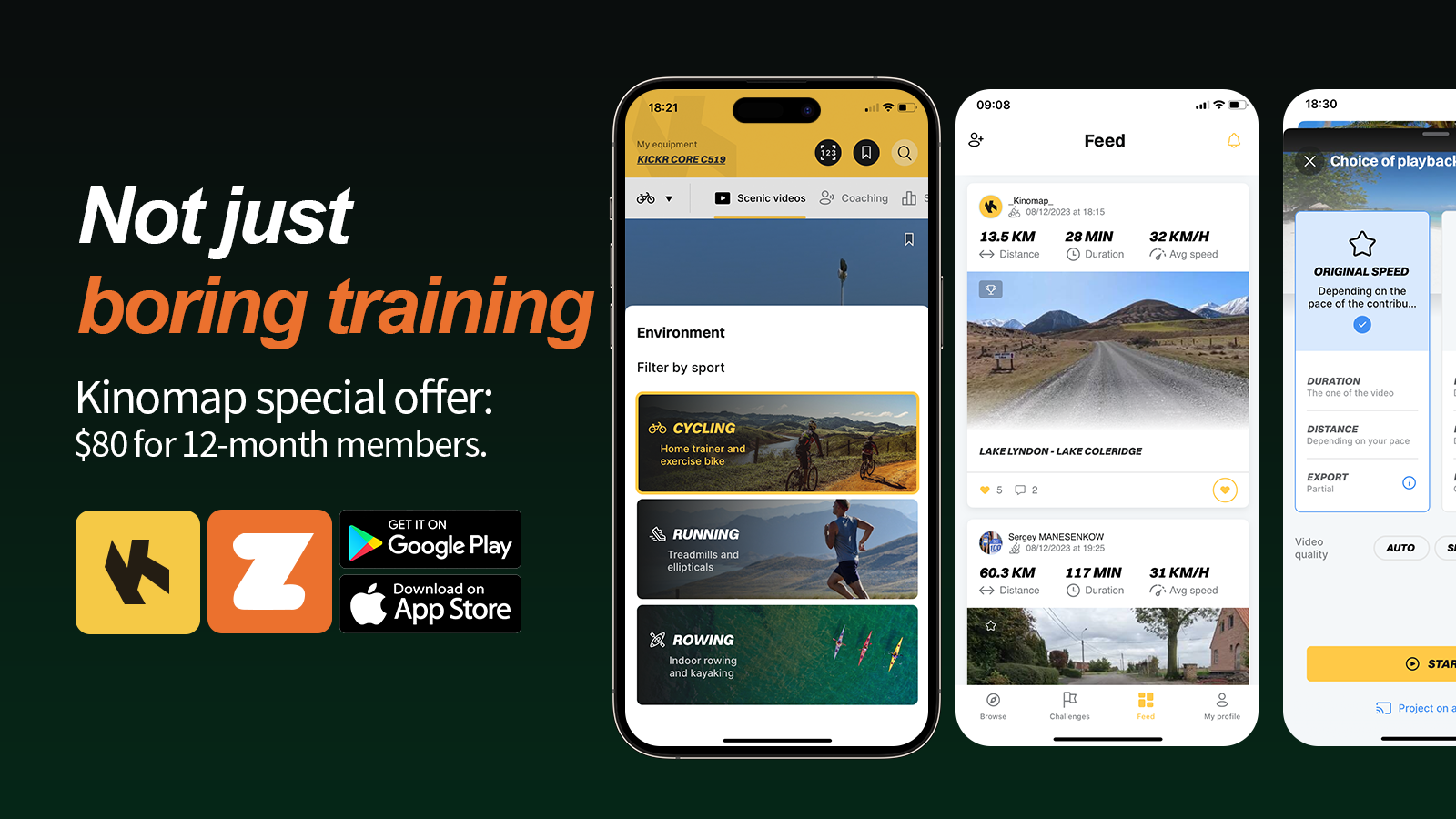 Track training progress and participate in interactive training. Join Kinomap Training Community